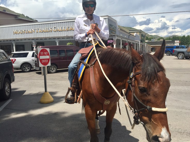 Passing through the “Antler Arch” in Jackson Town Square, we enjoyed a brief chat with a local volunteer on horseback.