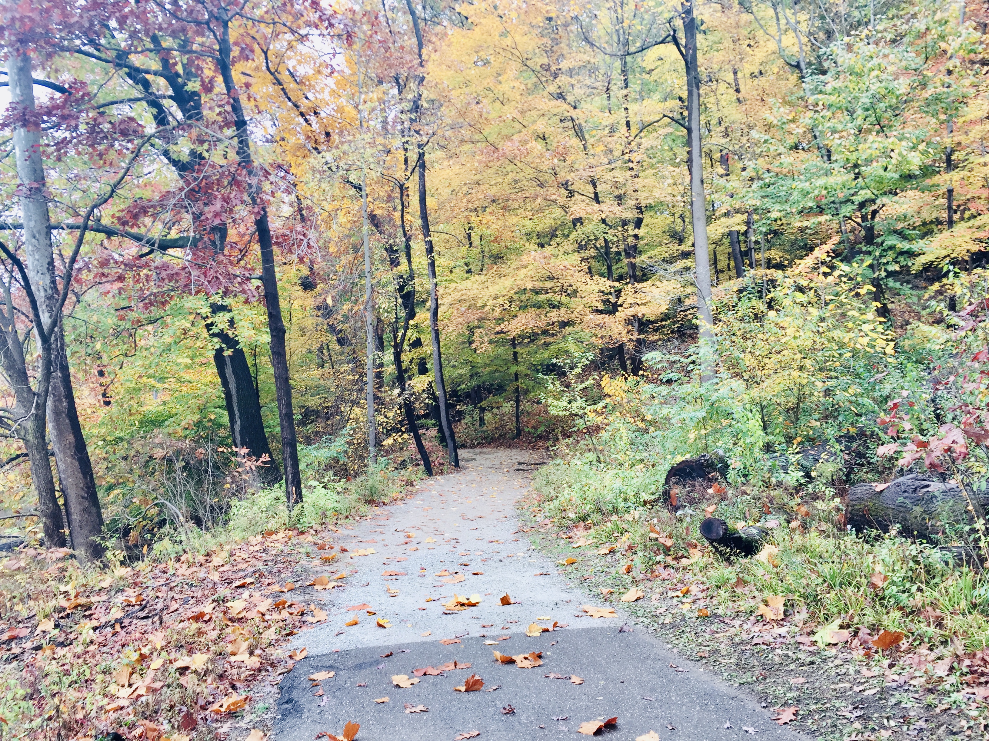Perhaps the most rewarding part of our latest road trip for me has been the opportunity to slow down from life’s challenges and simply embrace the subtle nuances of autumn’s seasonal glories. In this regard, it certainly helped that I took some time at the end of our vacation to re- witness some nostalgic October memories of childhood play in my former hometown of Cuyahoga Fall, Ohio today. For I possessed a strong desire to curiously frolick again amid a colorfully canopied ambience of dying leaves in the heavily forested lands along the Cuyahoga River Valley then. Somewhat sadly, I must soon return again to my home of unchanging subtropical greenery in South Florida. So understand how the following picture show from this  Northeast Ohio visit affects my heart and mind with autumn filled exuberance today.