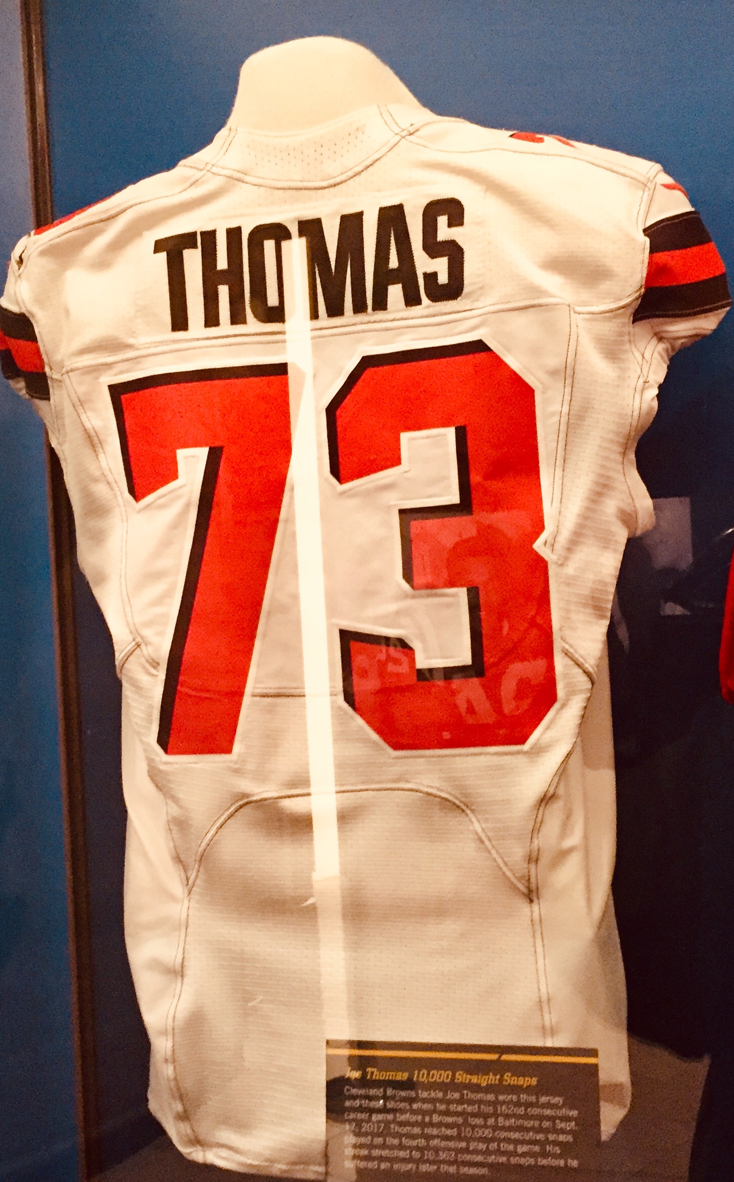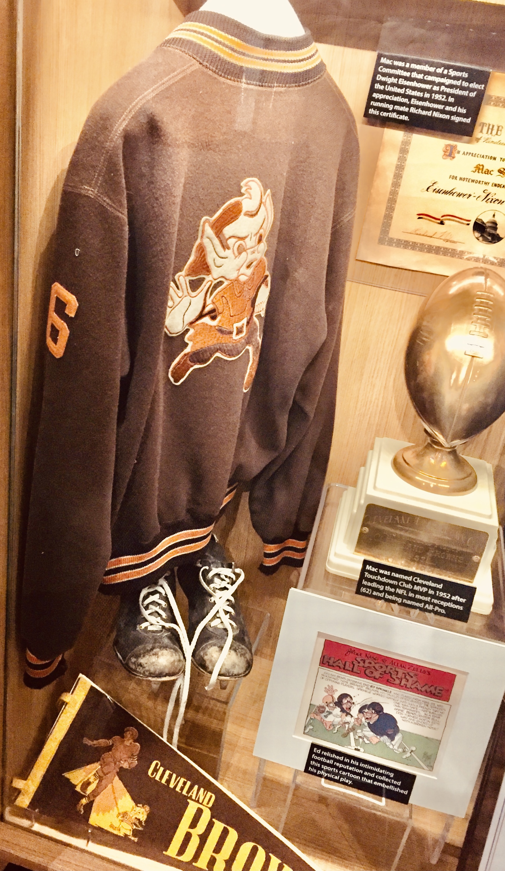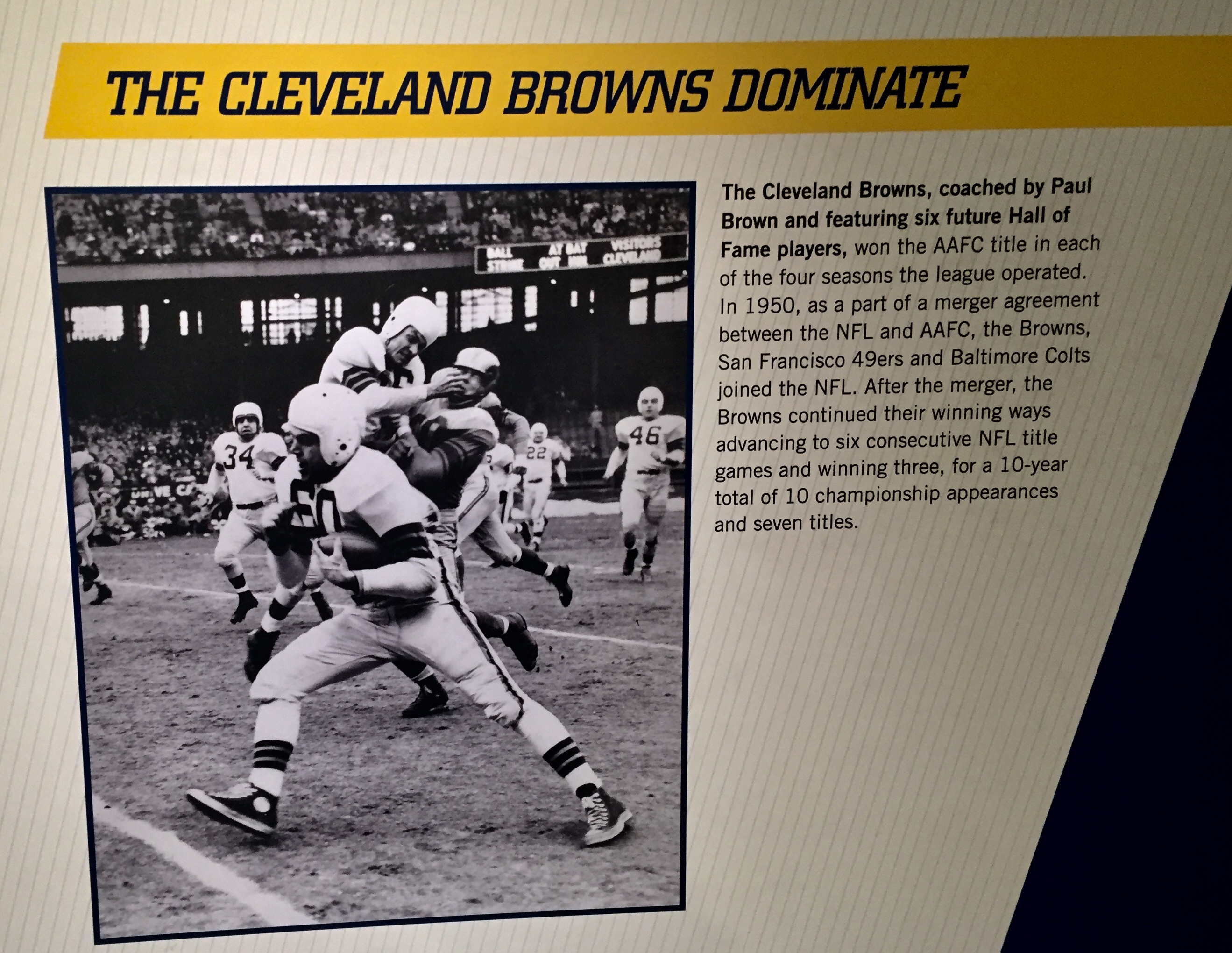 How satisfying it thus seemed on this frigid and windy winter Monday night to join this crazily loyal Browns crowd above the famed “Dog Pound” bleacher section to witness this talented Browns team compete “toe to toe” with the dominant Ravens in a 47-42 ,” nail-biter” contest. Yes, the Browns lost a close one. But I jubilantly exulted as my team provided a multitude of electrifying, sports entertainment moments for me this night. Therefore, it would seem logical that my sudden emotional jolt after this exciting game would motivate me to visit the Pro Football Hall of Fame in nearby Canton the next day. For I was psyched to discover much more about the triumphant traditions of Cleveland Browns football throughout N.F.L. history.
