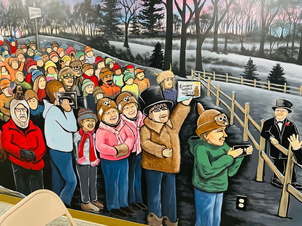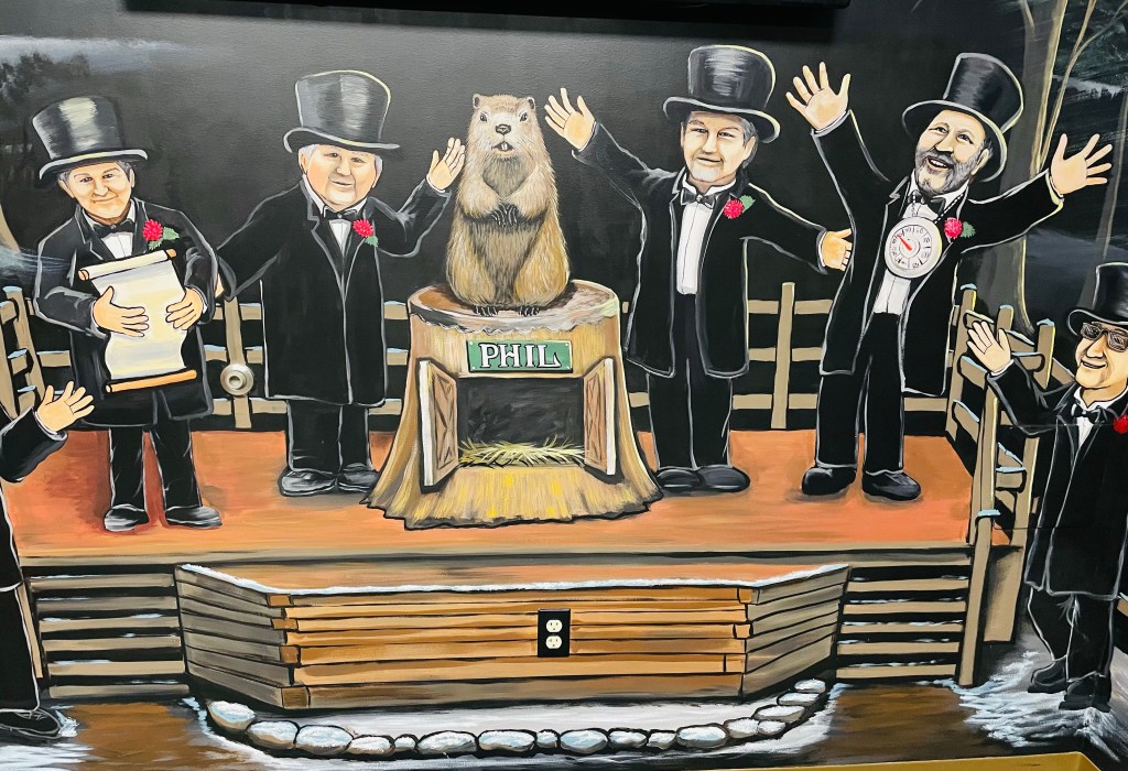 It might seem odd for me to recognize a furry animal as model of heroism on our road trip endeavor. But at our final Western Pennsylvania stop in the quiet village of Punxsutawney, a local ground hog named Phil, each year, emerges from his burrow at the beginning of February in town each year to provide hope to weather enthusiasts for winter’s end near and far. In fact, Phil’s legacy as a local hero all over town in Punxsutawney seems so powerful that town leaders have built him a safe indoor burrow to insure his survival year around at Barclays Square.