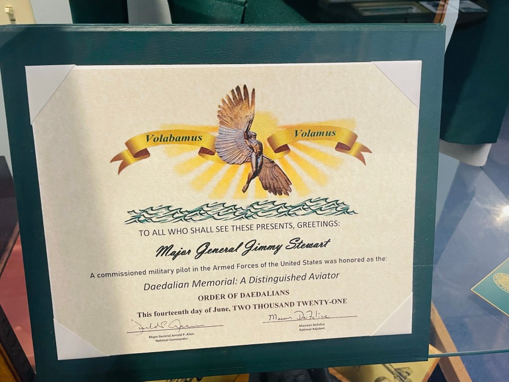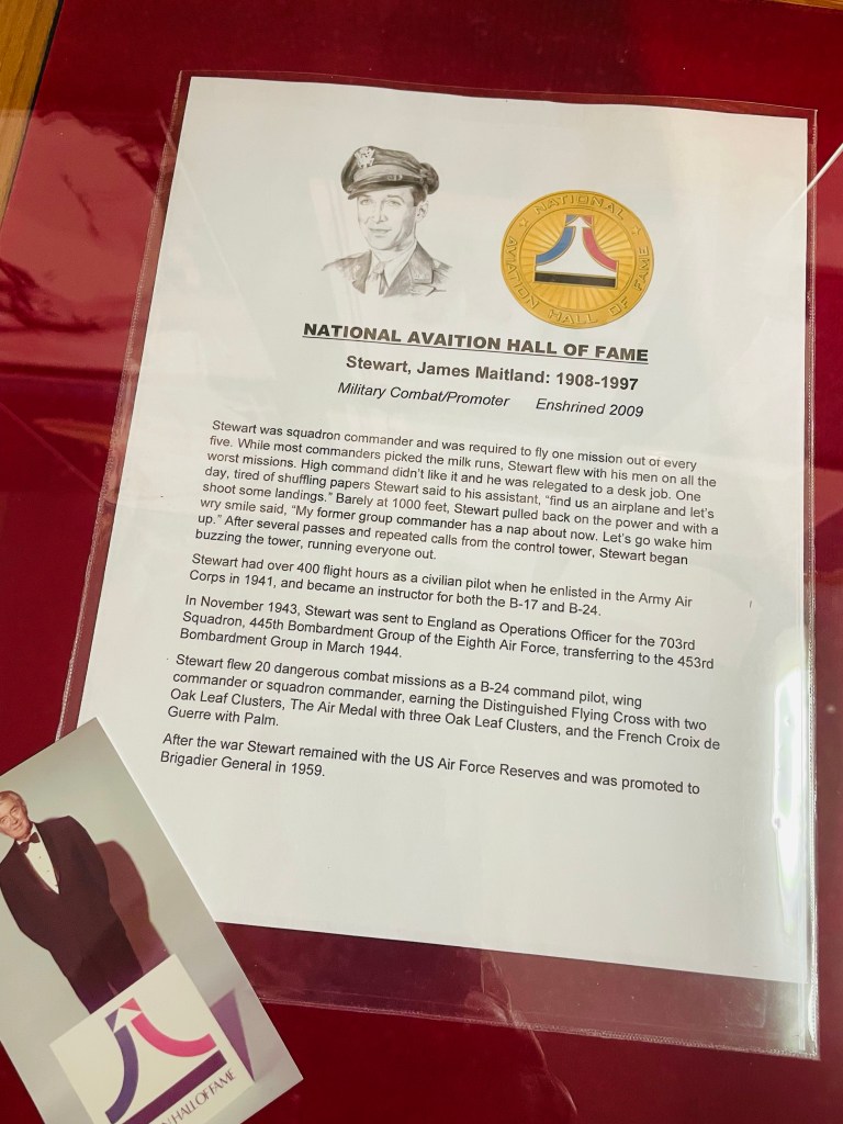 Moving on that afternoon to Indiana, Pennsylvania, I’d looked forward to paying a visit to the Jimmy Stewart Museum during our two day stay. So upon walking through its six galleries that documenting this famed movie actor’s life, I discovered a humble man of heroic stature who sacrificed years of film stardom to embark on a twenty seven career in the military during and after World War Two. Know that after Jimmy enlisted in the Army Air Corps as a private, by war’s end, he became fully decorated as a colonel, flying twenty, dangerous combat missions over Germany as a squadron leader in a B-24 Allies plane. On a personal note, it seemed very perplexing to me at the conclusion of this visit, that my father, who also risked his life in bombing raids over Germany form 1944-1945 did not also gain similar public recognition for such heroic deeds as well.