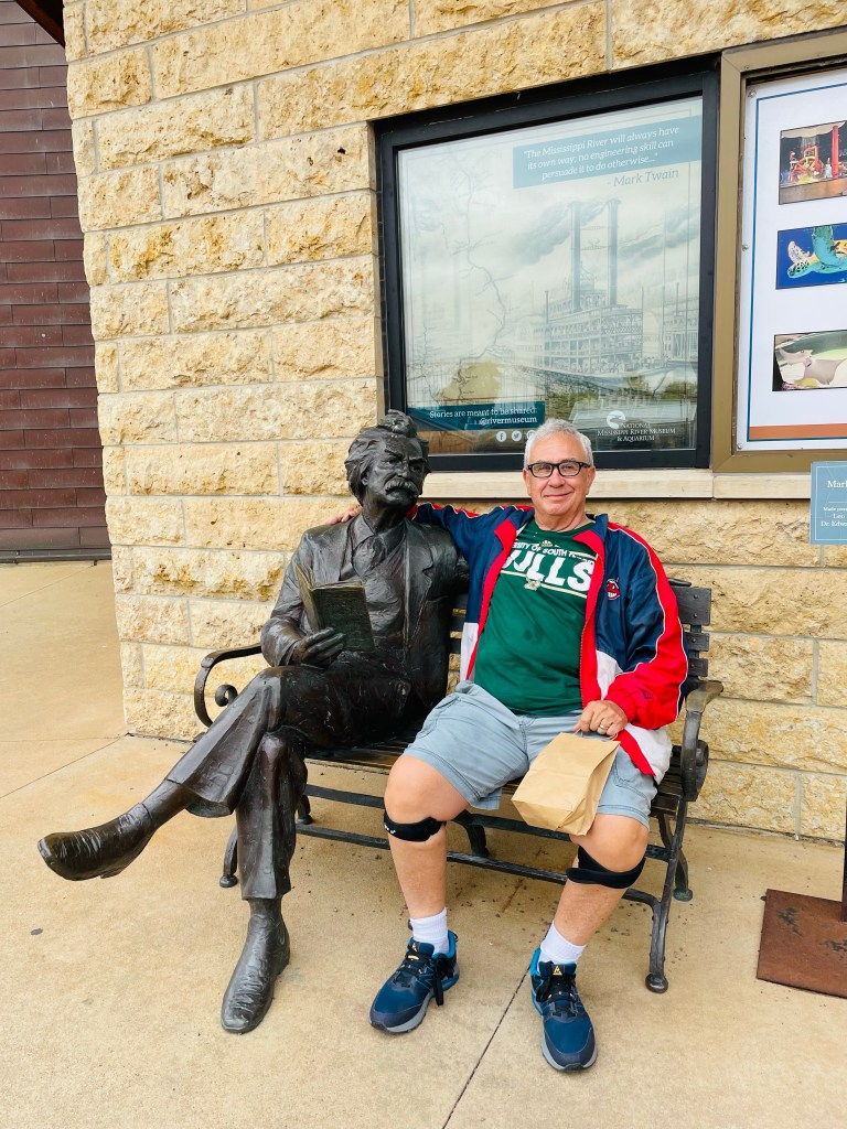 What does the Mississippi River mean to me from a road trip perspective? First of all, it marks a clear natural boundary where we leave more familiar grounds of populated eastern region settlement for the more wilder regions of the American West. Accordingly, I seem to transition in spirit after crossing the great river from a leisure centered tourist with pre-programmed sightseeing ways into a free roaming vagabond from pioneer days past. This Mississippi River border perspective also provides some tantalizing river cities of interest to stay for awhile before we proceed onward into more rugged terrain. In this regard, I immediately think of three favorite towns we’ve visited before. There’s Vicksburg, Mississippi often depicted as the turning point battle site of the Civil War, Hannibal, Missouri so nostalgically filled with Mark Twain’s literary world, and New Orleans where the Ol’Man River inspired musical jazz and blues artistry of a uniquely American style. I might add to this list the old cliffside town of Dubuque, Iowa, where we’ve wandered into on our present adventure in search of more pleasant moments of riverside discovery.