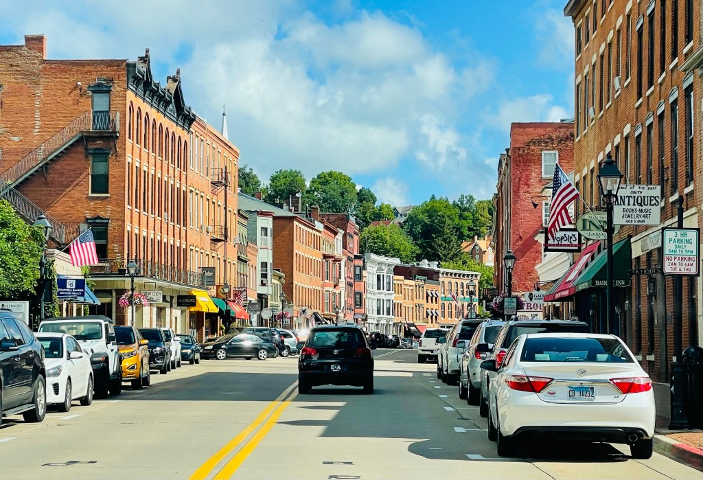 When we first entered the steep hillside town of Galena, Illinois for a two day stay, I immediately sensed along Main Street an “All American” tribute to their past resident hero, Ulysses S. Grant. Know that Galena’s “town fathers” presented Ulysses with free ownership of his previously rented, brick house on top of a hill overlooking town to honor his victorious Civil War leadership and later successful run at the U.S. Presidency. This modestly built abode, would serve as the official residence for the Grant family from the Civil War start to his Presidency and throughout the bulk of his retirement years. Aside from the vehicles parked along this street, my first glance on our mid-morning walk through downtown, revealed an authentic historic preservation effort here with rows of antique shops, friendly taverns, as well as a large hotel still standing from the 19th century era. At various points along this “Old Town” tour, I also took time to admire the impressive display of flags and banners revealing red, white, and blue patriotism in remembrance of Grant’s legacy as their local homegrown hero. .