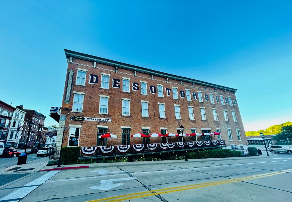 Among the most prominent discoveries during our Galena visit took place at the DeSoto, the state of Illinois’ oldest operating hotel operating from 1885 to now. Most impressively, our brief look at it’s guest lobby and front desk area yielded fascinating, old photographs of American heroes who once stayed in the “grand” rooms of the De Soto when it functioned as a major hub of social and political life in the town one time. In this regard, Abraham Lincoln made passionate anti- slavery speeches from the DeSoto balcony during his pre-election campaign while Mr. Grant similarly chose the De Soto as his political party headquarters during his successful run for the U.S. Presidency. After a period of physical decline to the building, the city of Galena took the initiative to successfully restore the “grand” DeSoto to its original appearance on a more modest scale. A short drive to the residential side of Old Town ended our first day in Galena with some stunning views of Victorian period residences abutting Galena’s steep interior hills.