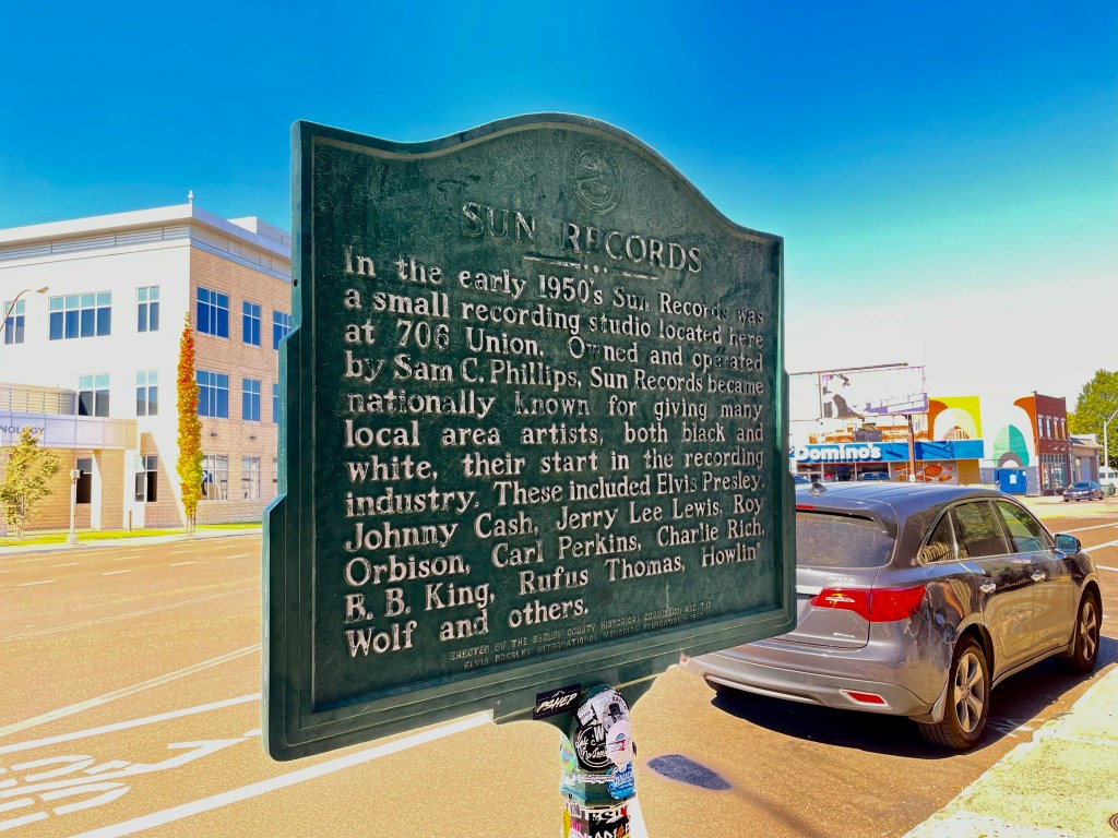 Another important Mississippi River stopover for Ruth and me on our Colorado road trip took place in Memphis, Tennessee this week. With however only a few hours to spare, we would concentrate our attention at legendary Sun Record Studio nearby the famed Beale Street music corridor of downtown Memphis. For we desired greatly to feel the musical vibe where the historic roots of American rock n’ roll music began there in the early 1950s. So upon waiting patiently in a sizable queue at the front of the building facing Union Avenue, we joined our twenty five person tour promptly at 10:00 am.