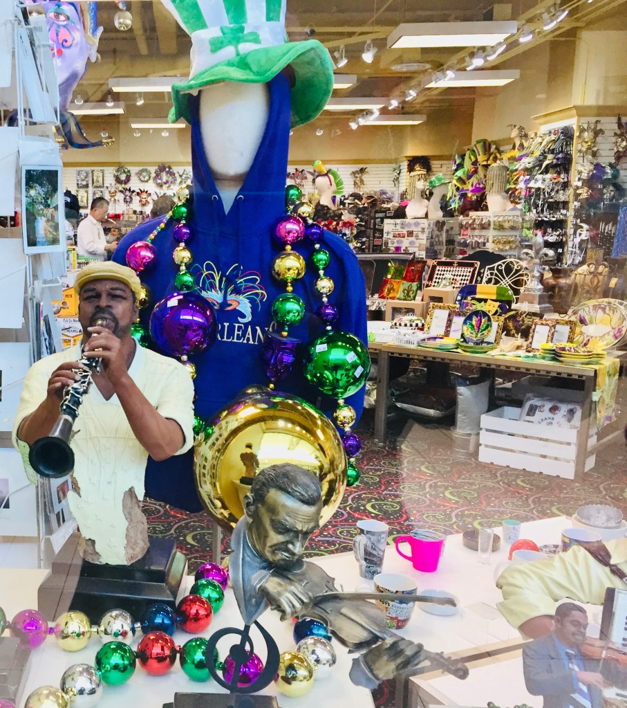 I know it’s only day time, but don’t assume you’ll be obligated to wait for a scheduled jazz show on touristy Bourbon Street tonight. For you can easily head back over the river now and let your ears guide you to any street band performances or an outdoor cafe “gig” around popular Jackson Square or the French Market where most likely you will not be obligated to pay. Too bad you missed jazz themed Mardi Gras this year, but you’ll get the idea of this immediate burst of jazzy excitement then by either doing some window shopping along Canal Street, staring at French latticed balconies along Bourbon Street, or perhaps engaging in some serious statue gazing at Music Legends Park further uptown.
