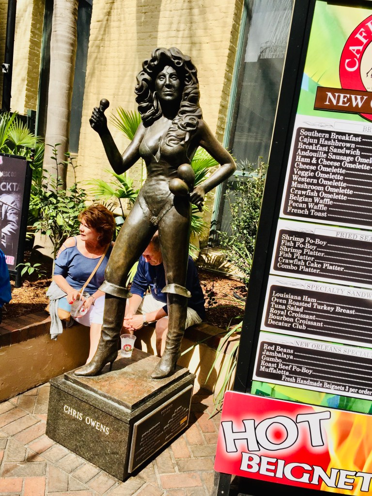 I figure you might be getting tired of walking so much now. So go ahead, it’s still early, and instead get on a local streetcar back on Canal and head northeast toward Frenchman Street where the “locals” might go to experience a quality jazz band performance when desired. While there are several venues to choose from, I would highly recommend the “Spotted Cat Club” early show at 6:00 pm. As you will likely be fully loosened up now by this intimate live performance, show your appreciation for this fun filled day of New Orleans jazz with a striking photo  by a favorite statue. Enjoy the photos.