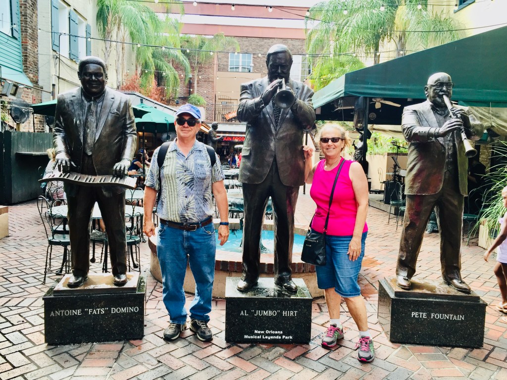 I therefore suggest you begin your “Big Easy” tour with a short ferry ride to the quiet neighborhood of Algiers on the opposite bank of the Mississippi River from the bustling French Quarter downtown. As you saunter serenely along the designated walkway of the “Jazz Walk of Fame Trail”, I recommend you utilize a convenient audio guide app to hear pleasing sample soundtracks at seventeen statue landmarks memorializing legendary jazz musicians who earned New Orleans fame along the way. When the mood strikes you at any point along this route, feel free to take some photographs of your favorite downtown setting across the river as well.
