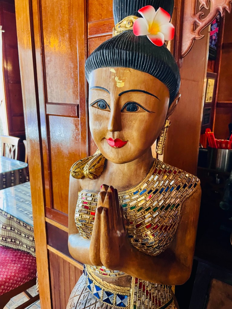 I enjoy the sensory taste appeal of Pad Thai and Red Curry cuisine. Yet the word Thai in my current life seems to connect so much more to me than food these days. Know that such deeper interest in Thai culture first began when Ruth and I traveled to Bangkok a few years ago. For I noticed then how so many people performed the welcoming ritual of Namaste by folding arms in prayer pose gracefully across their chest.