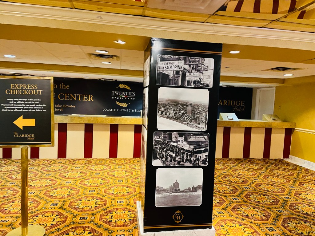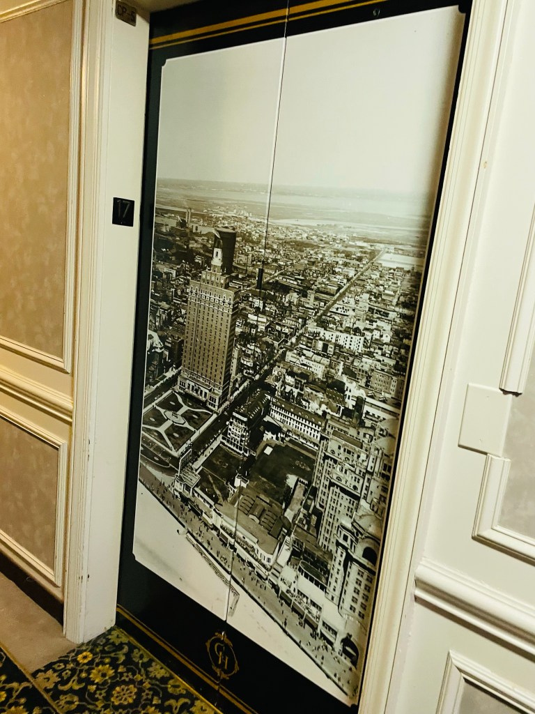 Thankfully our hotel accommodations at the historic Claridge Hotel turned out fine as well. For our room provided us a nice view of the city on the 17th floor and also impressed us as comfortable, clean and moderately priced. I might also add my personal affinity for the ” Art Deco” appearance of this hotel which featured an ornately decorated lobby, gold gilded hallways and a collection of old city photo displays strewn on walls throughout the building. Yet in spite of The Claridges’ well restored appearance, I could not stop thinking that this aging hotel seemed well past its prime.