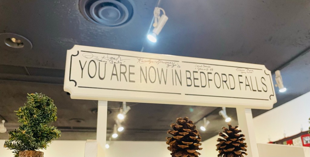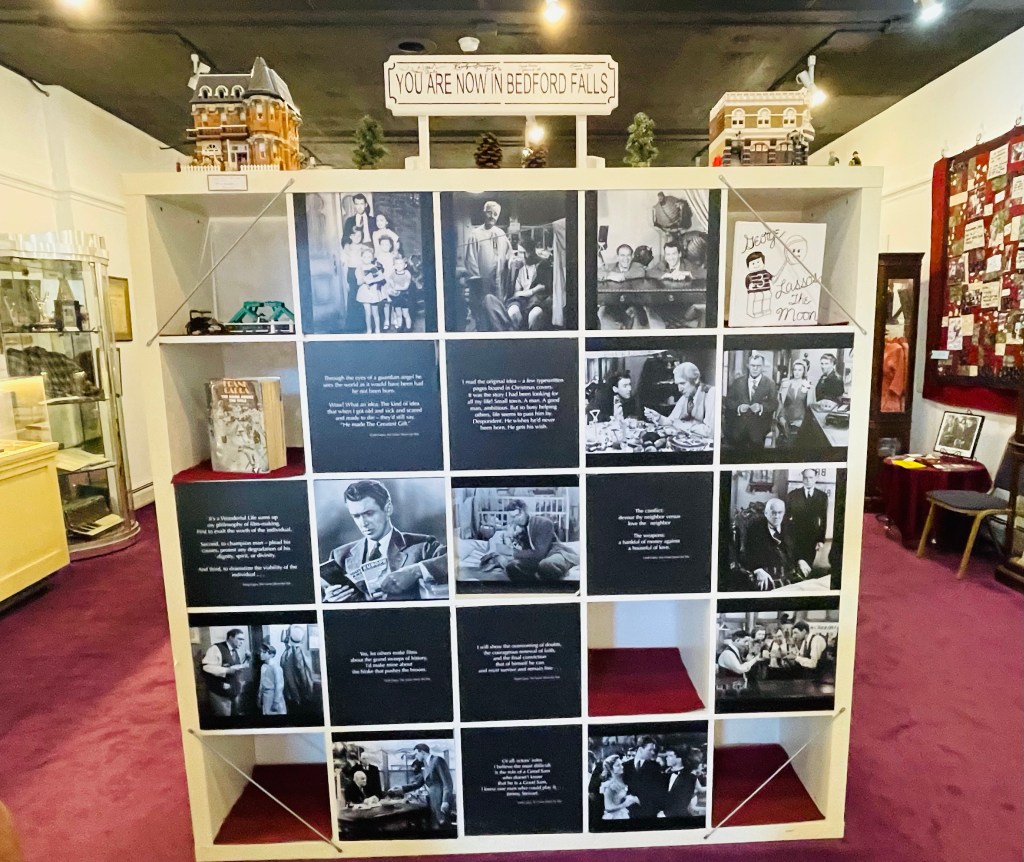 So with much surprise nearby by our motel location, Ruth and I discovered on our road trip to Seneca Falls, New York, the original town inspiration of Bedford Falls for Director Frank Capra’s script in 1946 for this legendary movie. In fact our short drive through downtown here provided plentiful reminders of Bedford Fall’s depiction in the movie. There’s a Community Bank for instance in the center of town where I envisioned George busily spending so much of his time keeping his “Savings and Loan” Building open for customer use. Martini’s Bar’s close by this location also provided film reminders of a more decadent Bedford Falls that might have happened without George’ benevolent presence there. Of course I could not also miss the original bridge site from the movie where a despondent George jumped off in suicidal fashion only to re-emerge with angel Clarence’s help with renewed faithfulness for his current life. But the crown jewel of this town with respect to the movie took place at the small “It’s a Wonderful Life Museum” containing a sizable collection of artifacts from the movie setup as well as some interesting biographical tidbits about each film character who took part then.