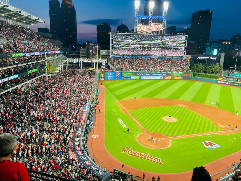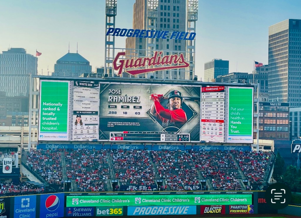 Yet it seems that it’s more than a trend setting team title that’s needed to satisfy today’s short attention span crowd to stay interested in “Tribe” baseball. Witness for example my attendance at Friday’s Cleveland Guardians game featuring dollar dog night, $2.00 beers, a twenty two minute fireworks show, a short rap music concert, and of course a heavily timed pitch and hit count version of baseball. Yet there’s a simple answer to such layers of new sports distraction. Just concentrate on the little white ball that keeps the game action moving. Batter up Indians!