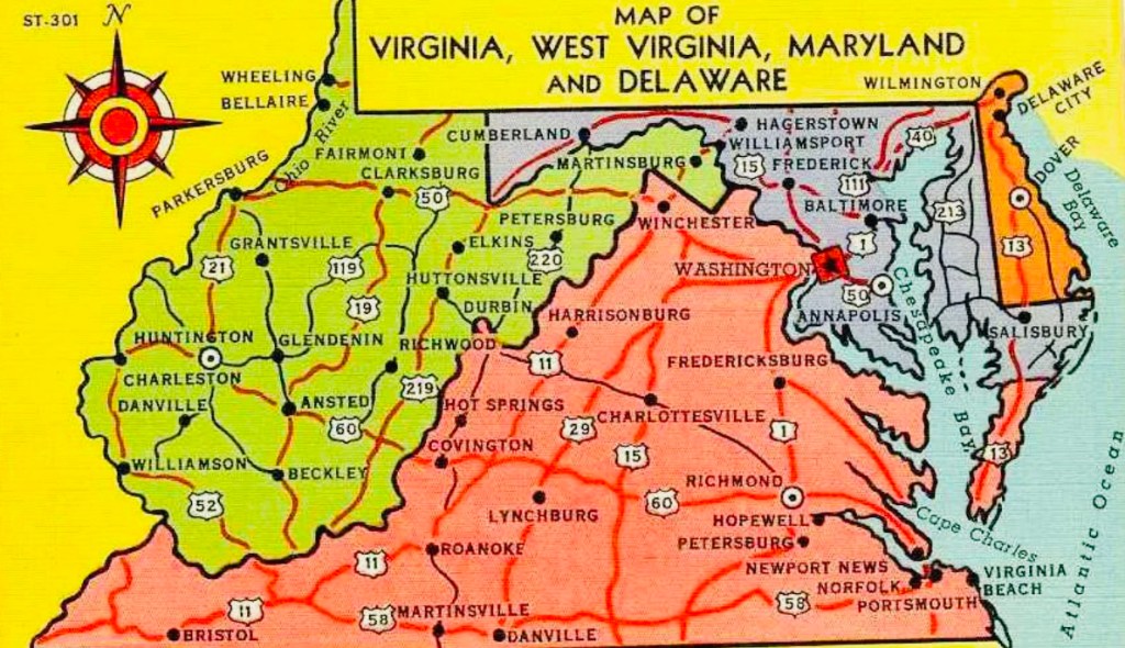 Ex. 7 – That stranger at the gas station told me told me that some illogical state name adjustment involving direction must be made to reach West Virginia. What did he mean?