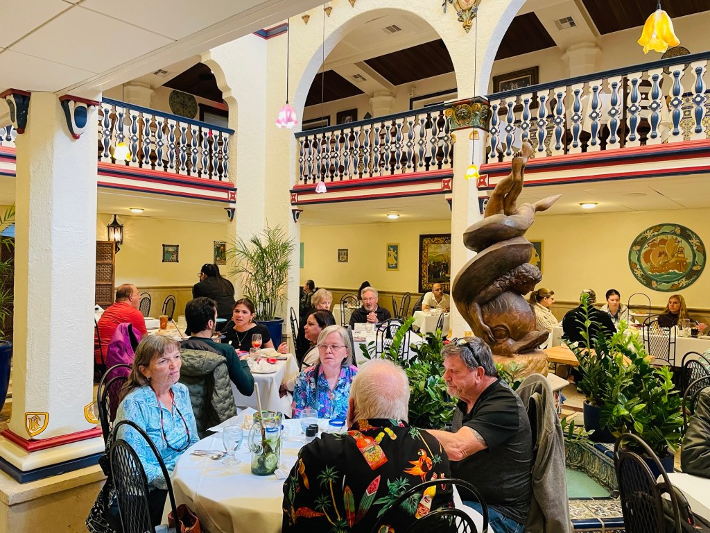 I next made a brief visit to the Ybor City Museum State Park, filled with flashy hue displays of posters, flags, and other rare cultural artifacts. I took a particular interest then in Cuba’s  cigar influence from Tampa’s industrial past. Such sensory overload continued for me at lunchtime as I indulged in a crispy Cuban sandwich and table prepared mixed salad in decorative elegance at the historic Columbia Restaurant. Gazing around indoors and outdoors during this unique dining experience, I pictured a glowing radiance of gold, silver, and other riches as manifested in the Spanish conquistador tradition. With good luck on a future visit to Columbia, I look forward to experiencing the multicolored passion of Flamenco dance performances in the dining area at my leisure.