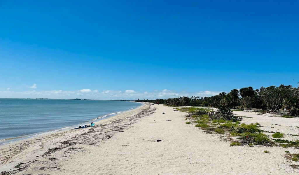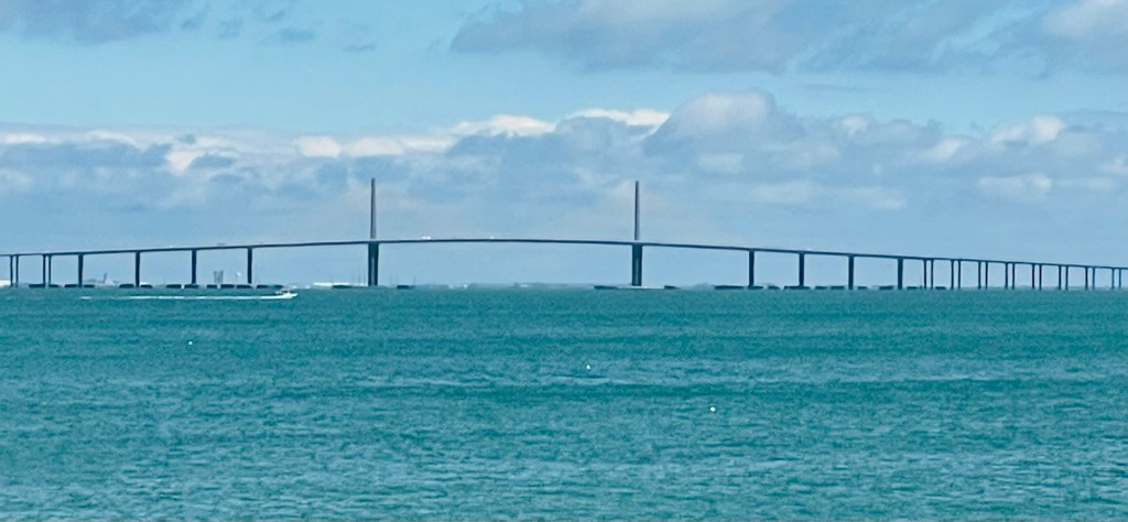 The St. Petersburg city region along the west coast of Florida provided  a relaxing road trip “getaway” for Ruth and me Iast week. While it gets crowded there in springtime from the annual “snowbird” invasion, we felt savvy enough to find a quiet spot to relax on the beach from this tourist frenzy. So we immediately thought of  Fort DeSoto Beach, located at the southern tip of this peninsula as the  best site to  just sit or stroll.  So I enthusiastically wrote the following poem as we lingered around these tranquil bay waters the  day after a severe  wind and rain storm event shut down our outdoor activities in this area. Enjoy the photos.