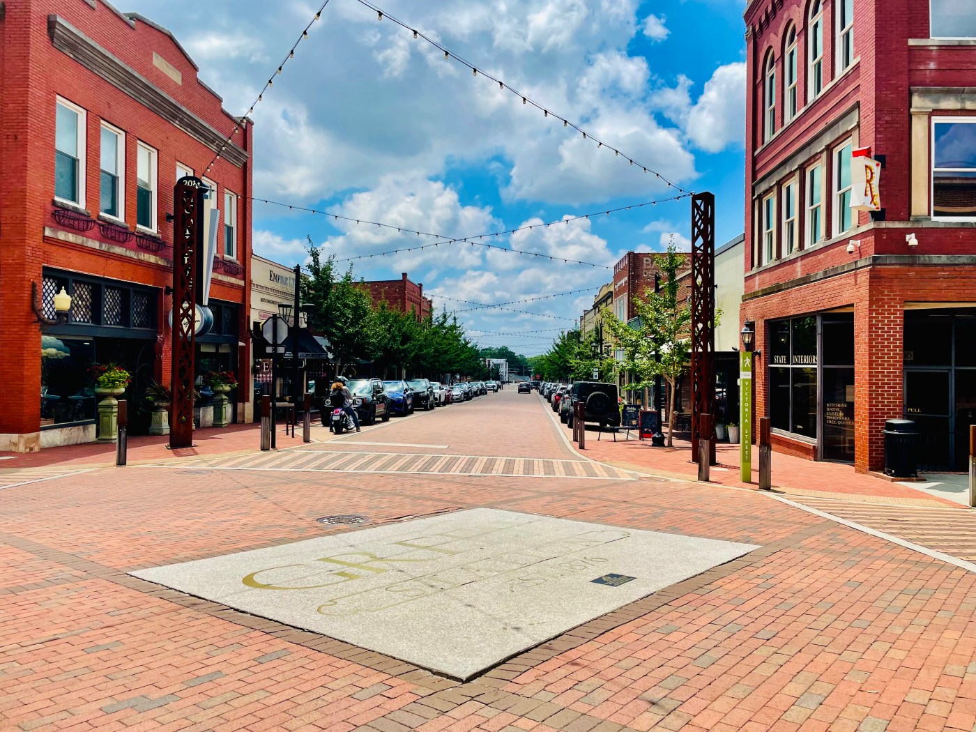 Next up on my agenda would be finding a suitable lunch spot in the heat of the day in Greer town proper to further investigate the potential presence of southern charm culture. Toward that end, a first glance hinting at hospitality potential happened upon driving through the heart of downtown. It seemed then that I felt a positive aura in observing recent redevelopment of these historic surroundings along these brick covered streets, that captured a fresh spirit of I was welcome to this town. Upon further inspection by taking a follow-up walk, I indeed confirmed how the effective use of clever word signage, colorful floral arrangements and patriotic flag placement in proximity to storefronts contributed to such a friendly and courteous spirit for visitors to see.