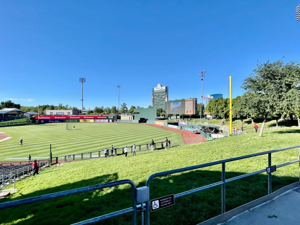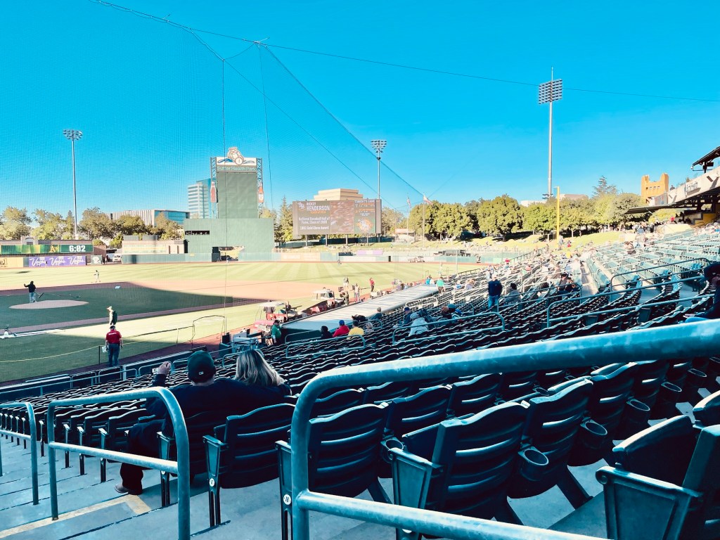 But on our two day road trip visit to Sacramento ,a sizeable metropolis of over 500,00 people, I noticed an easier managed lifestyle right away. Sitting at Sutter Health Park  to watch an Athletics major league baseball game for instance on our first night , I immediately noticed how people moved at a slower pace as they made their way from the parking lot to their seats. Before  the game began, a distinct buzz of respectful cheering and friendly conversation reminded me of a neighborly gathering in a town hall setting. I also noticed there seemed to be plenty of space to move around without being crowded by other people in stadium corridors, concession  lines and those visits to the restroom.