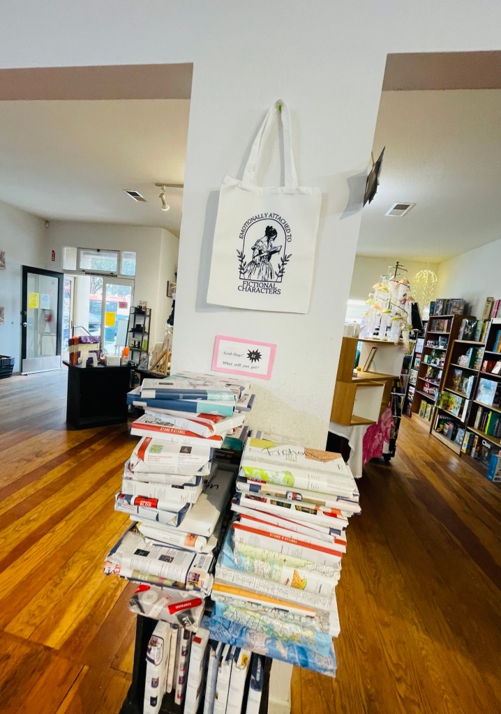 Half Moon Bay, California – Buying unknown books in “grab bag” fashion at  “Ink Spell” bookstore.