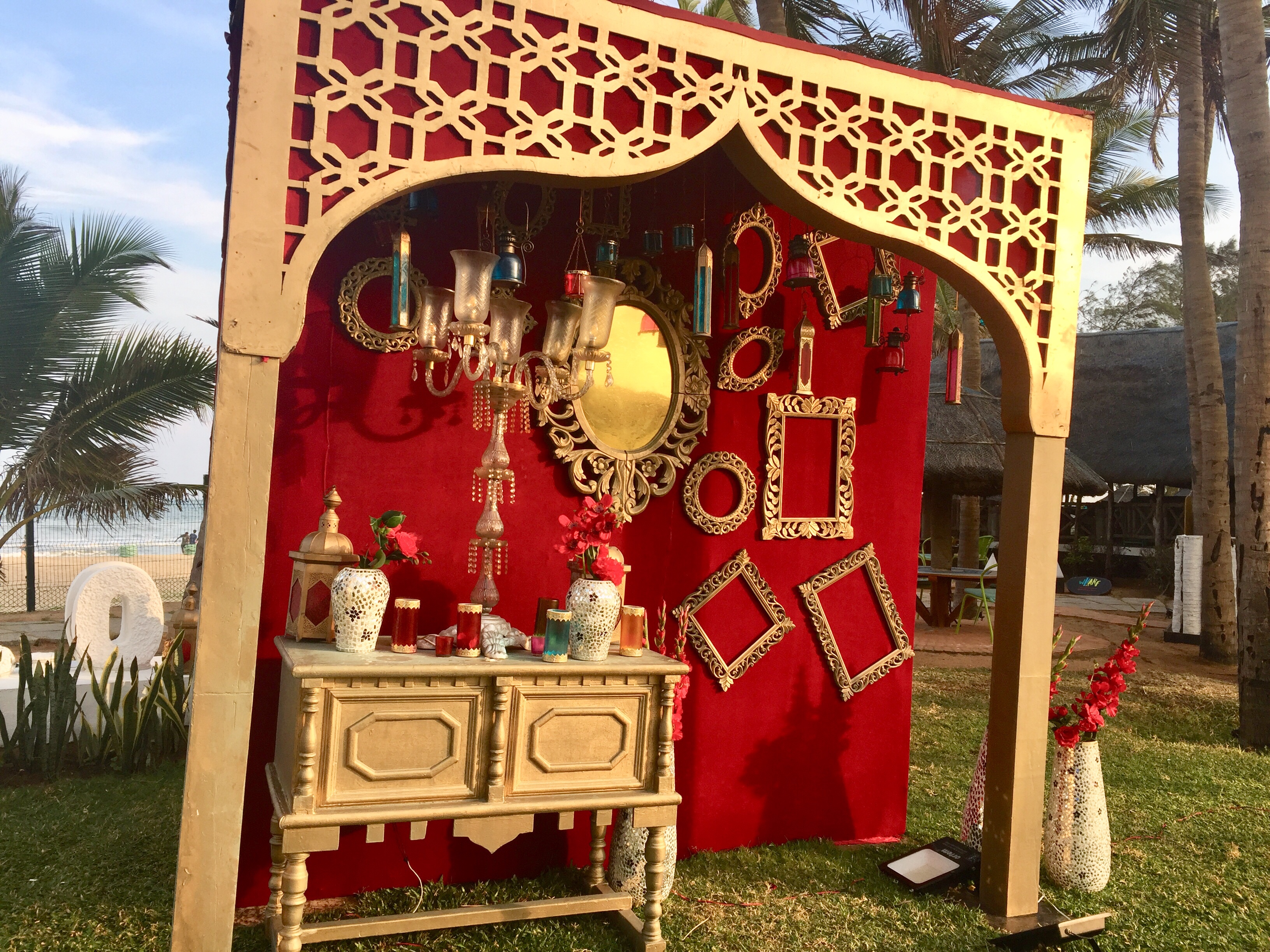 While walking from our resort hotel to the serene beach along the Bay of Bengal, I discovered this romantic wedding backdrop of crimson glory.